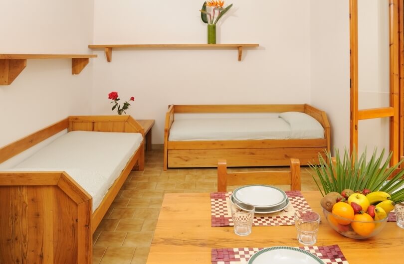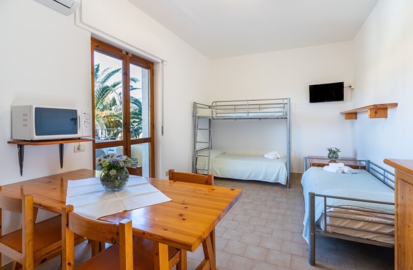 Residence Oasis offers various types of apartments suitable for families or small groups of friends (two-room apartments for 4 or 5 people and three-room apartments for up to 6 people), all with a large balcony, private bathroom, tv, telephone, air conditioning and a fully equipped kitchen.