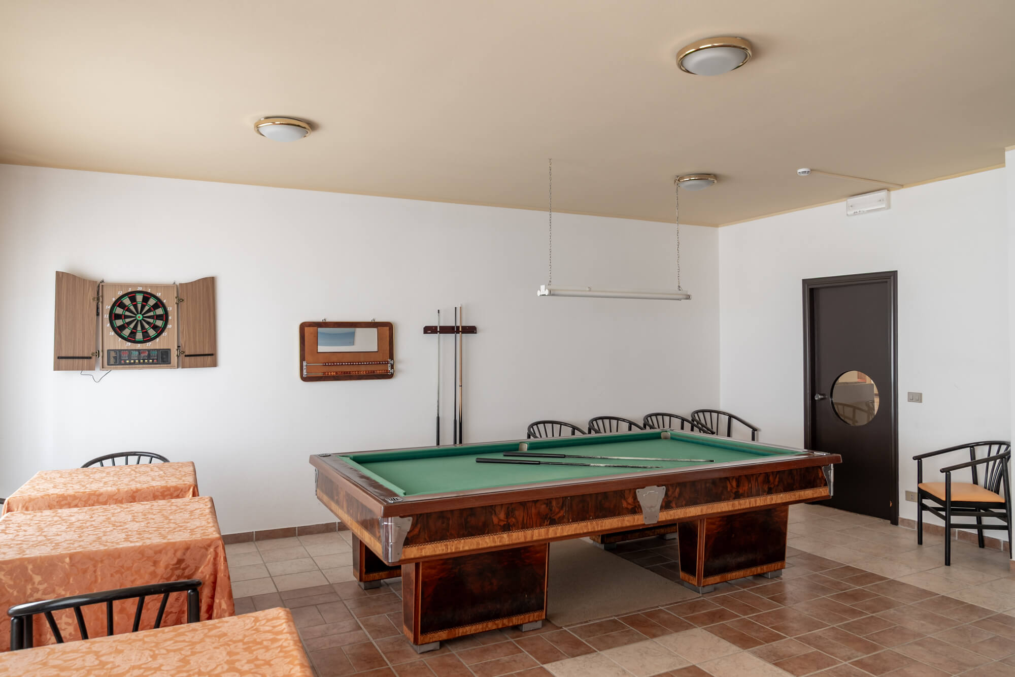 All’interno dell’Hotel è disponibile una sala TV comune e un ampio salone in cui giocare a carte o a biliardo, leggere un libro e usufruire del servizio bar interno disponibile nelle fresche serate di fine stagione.