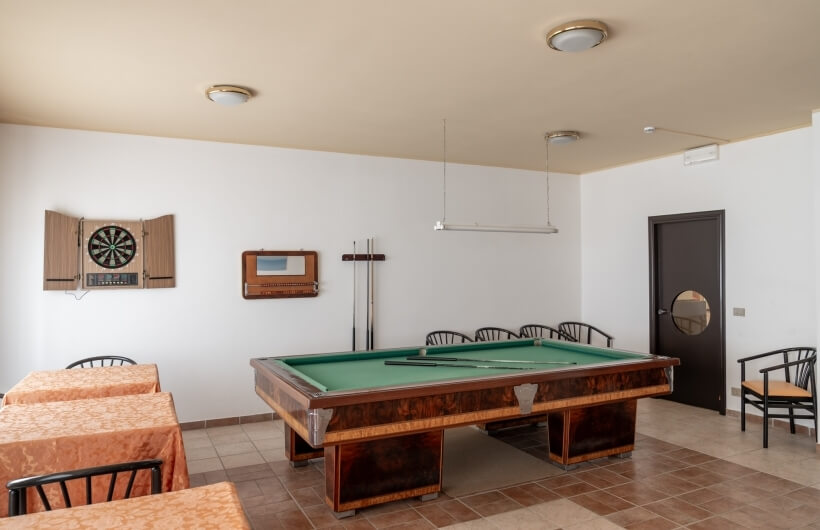 Sono inoltre disponibili anche un tavolo da ping-pong, un biliardino ed un tavolo da biliardo.