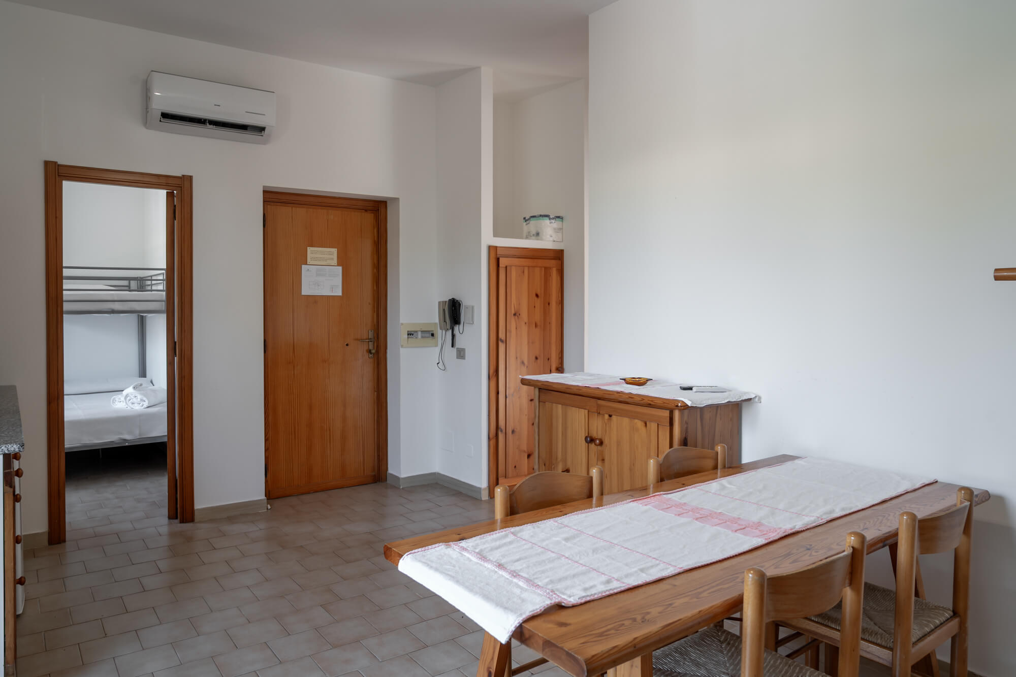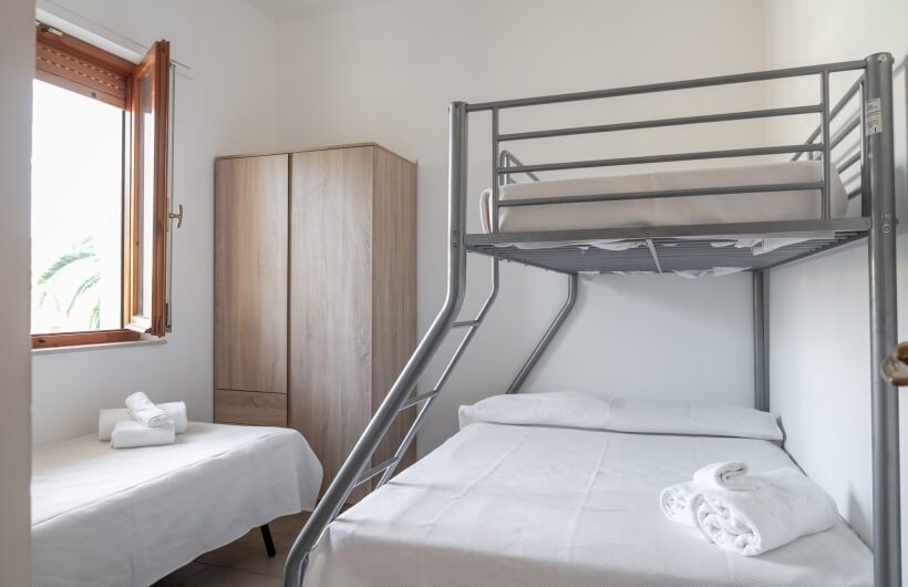 Soggiorno con 1 letto singolo, camera con letto a castello + letto singolo, camera a 2 letti o 1 letto matrimoniale.